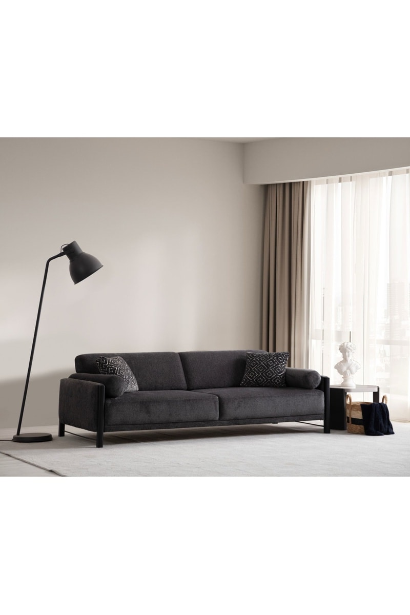 Canapé en bois - Anthracite - 3/4 places - Tissu structuré