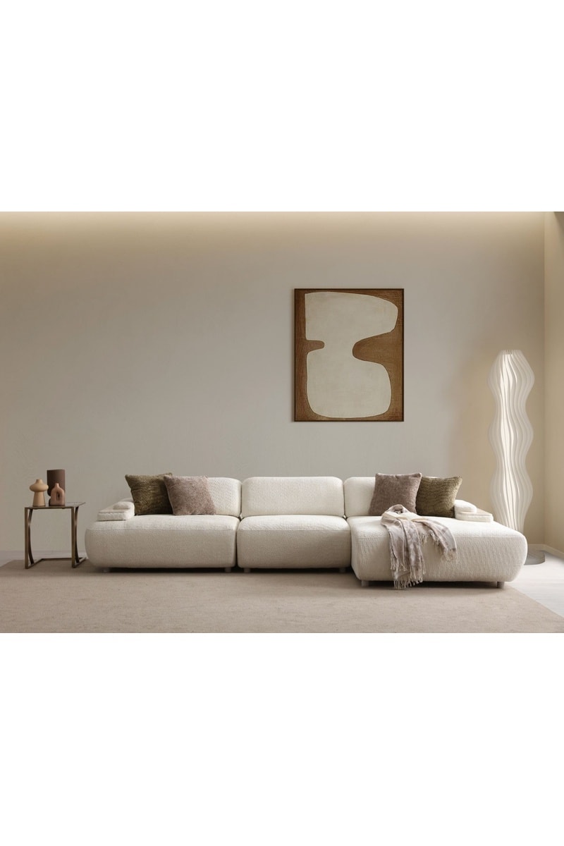 Canapé d'angle droit en hêtre - Beige - 3/4 places - Tissu structuré