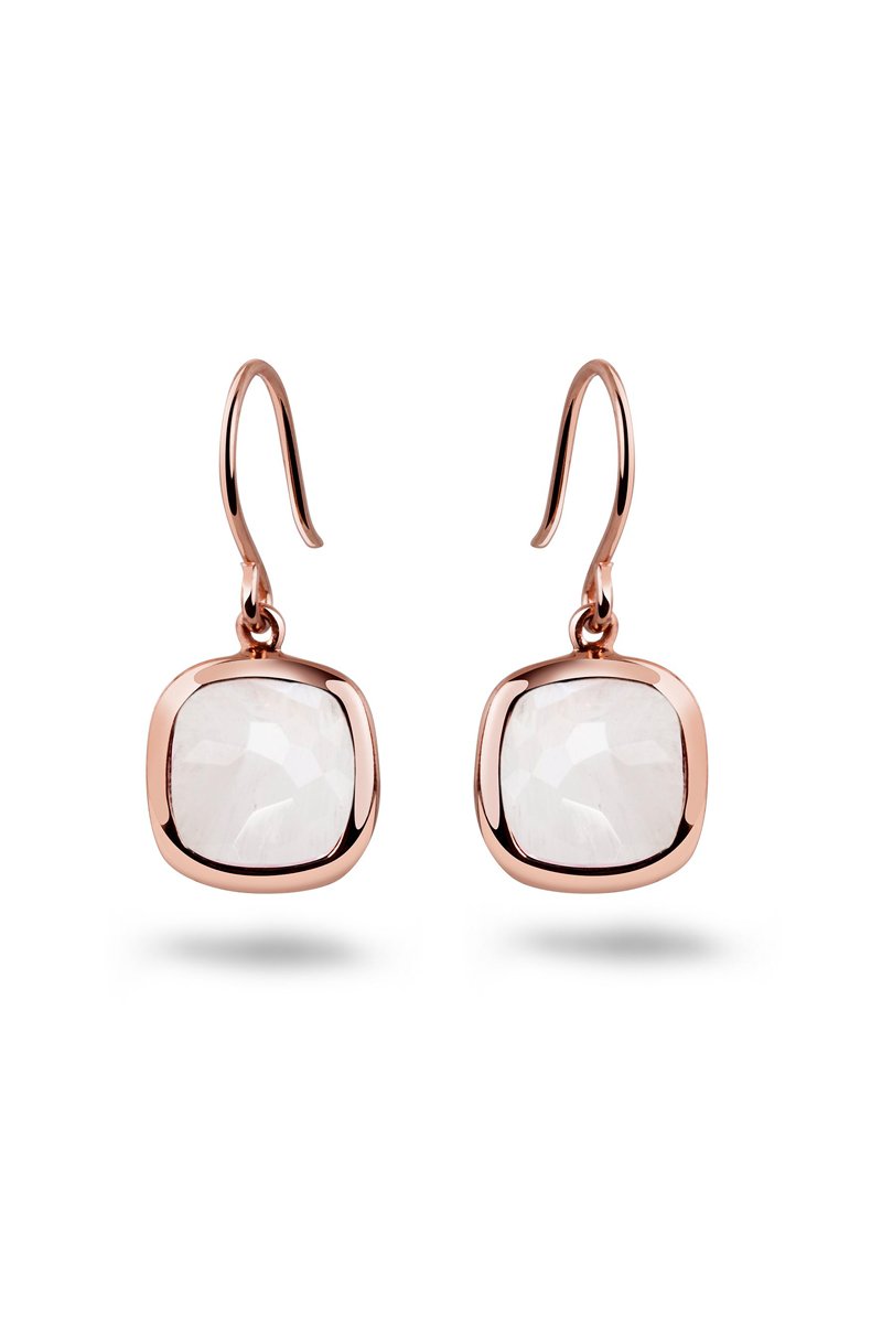 Boucles d'oreilles pendantes en argent plaqué or rose sertie d'une pierre-de-lune.