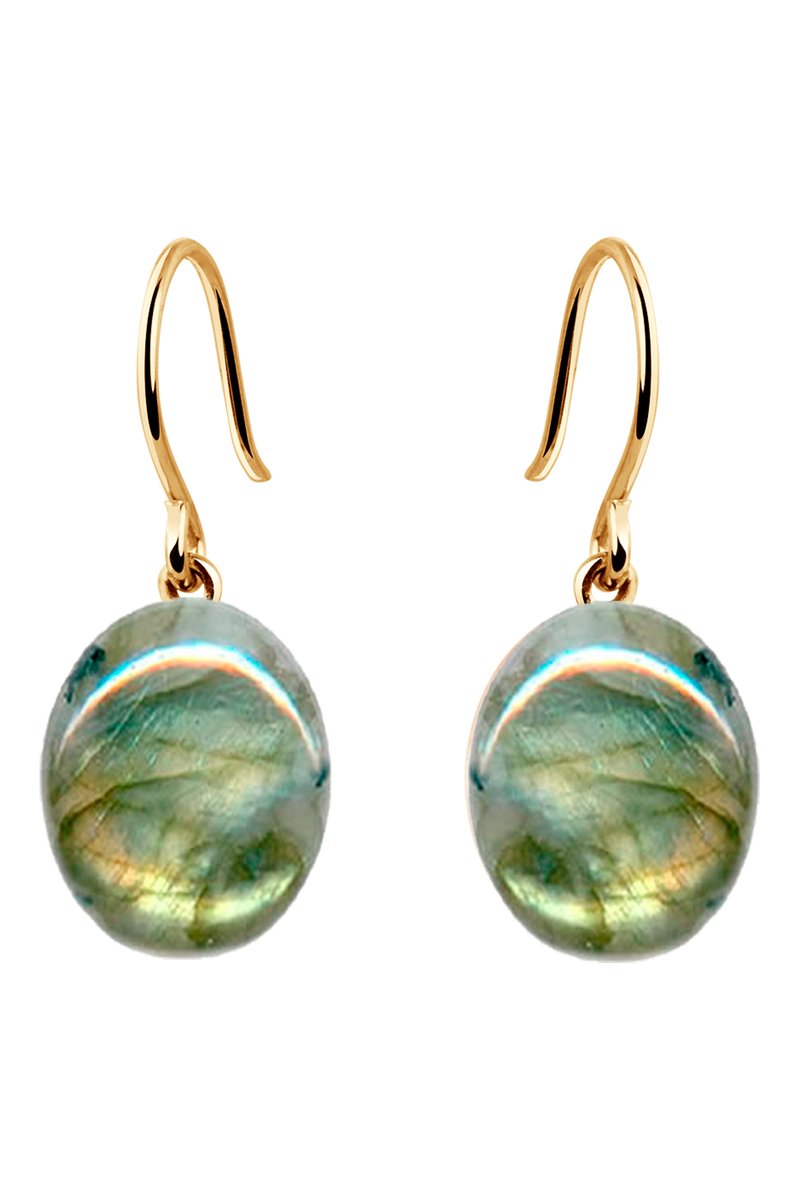 Boucles d'oreilles pendantes en argent plaqué or jaune serties d'une labradorite.