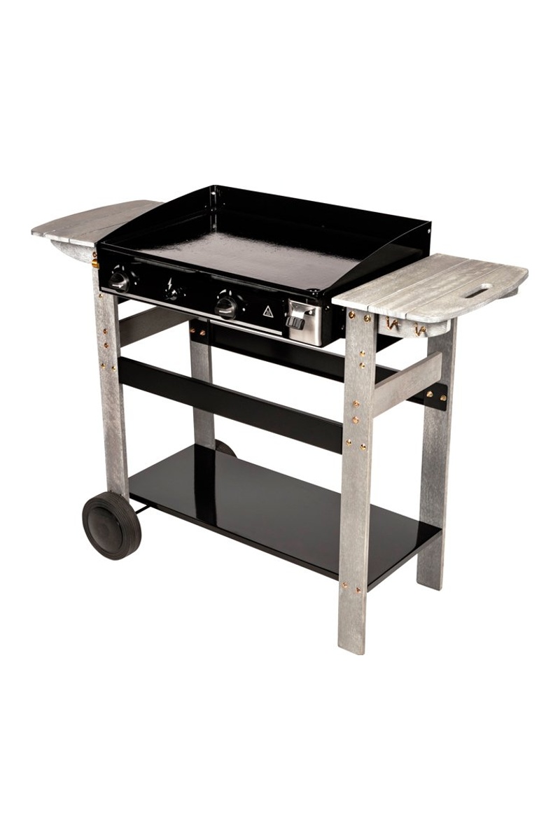 Plancha au gaz sur pieds et roues en bois FSC®.