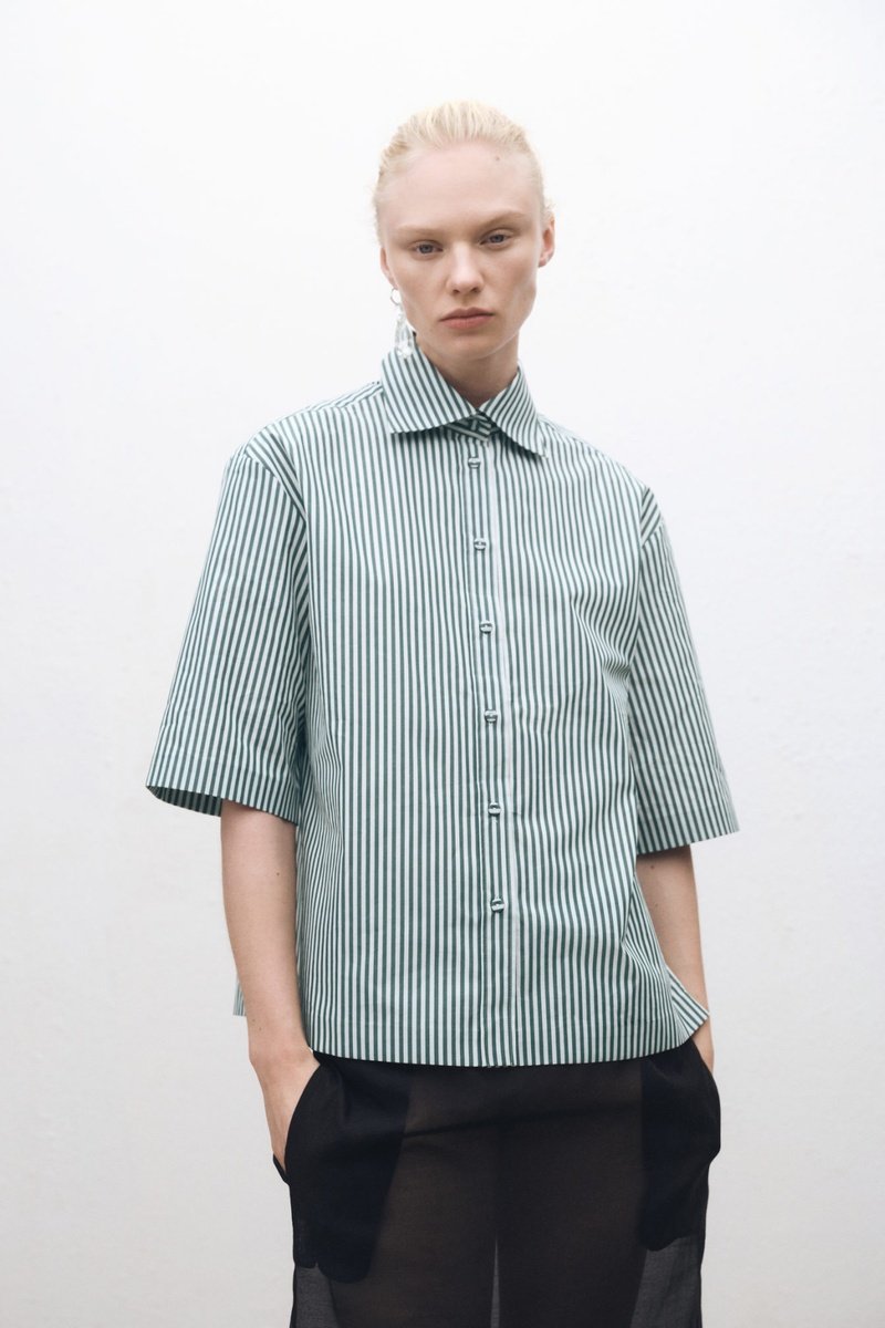 Chemise rayures manches courtes coton - Vert forêt