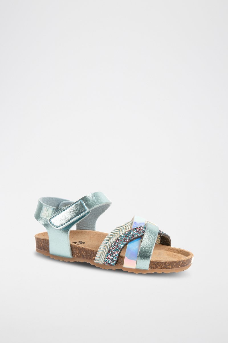 Multiples brides croisées dont 1 vernie, 1 tressée et 1 pailletée.