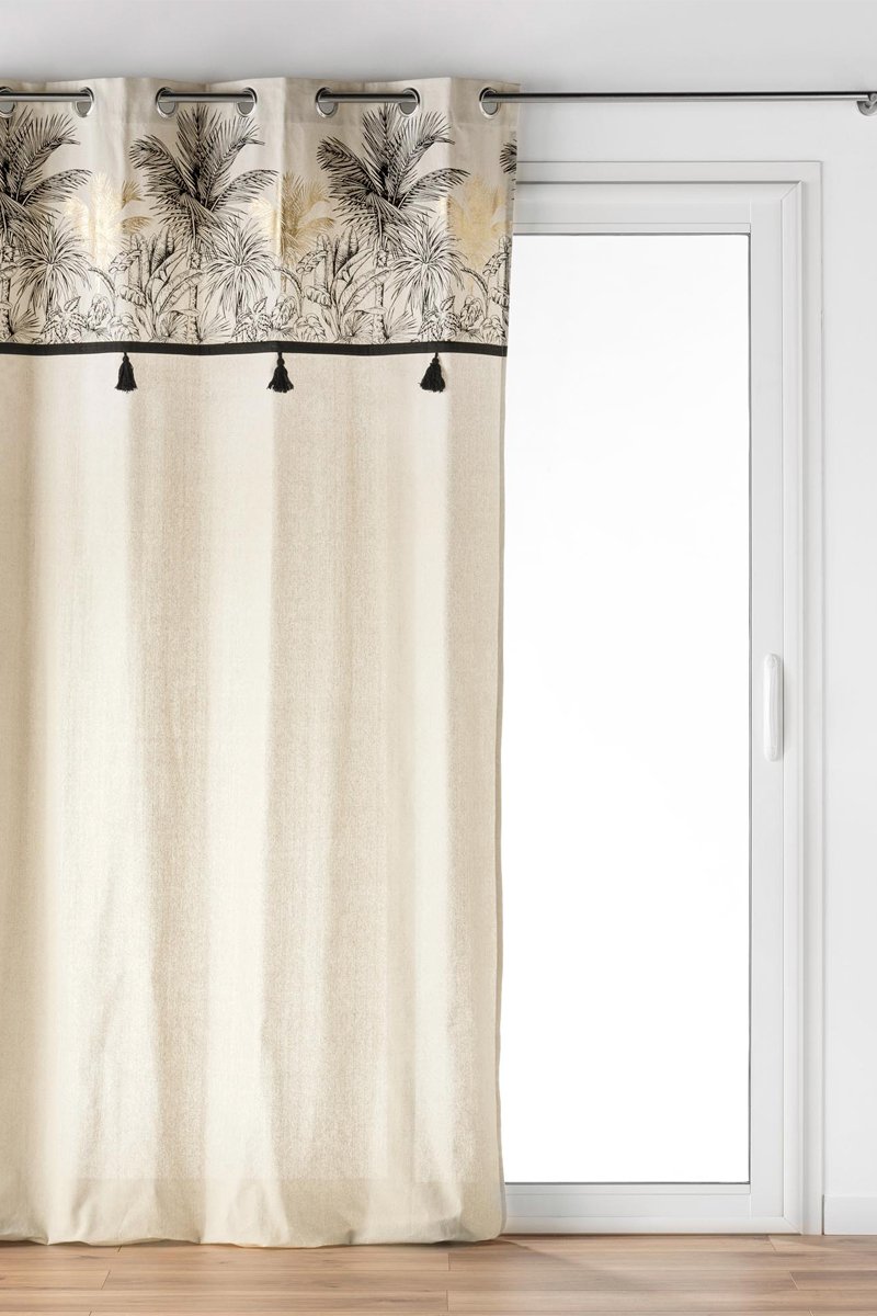 Rideau à œillets Papaya - Beige et noir - 140 x 240 cm
