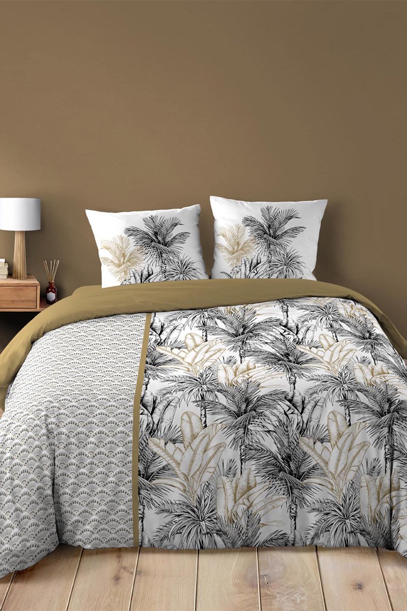 Parure de couette Dakar en coton 42 fils/cm² - Marron et blanc
