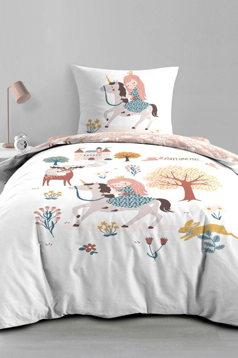 Parure de couette en coton Lilibelle - Blanc et rose