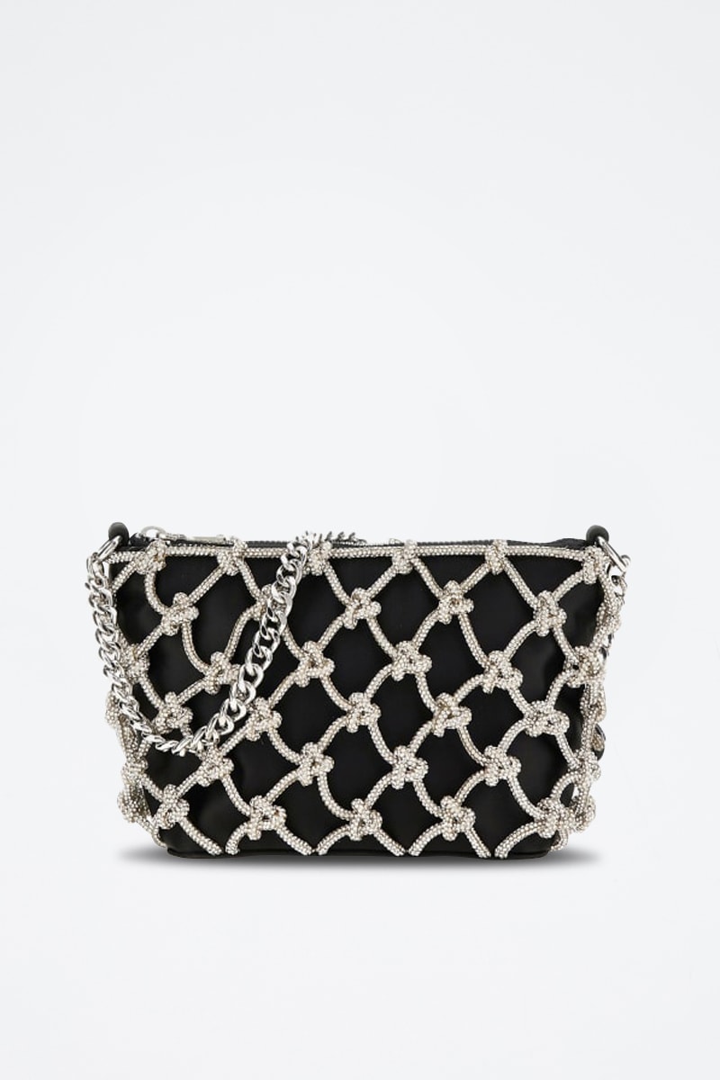 Bandoulière chaînette avec porte-clés et logo métallique.