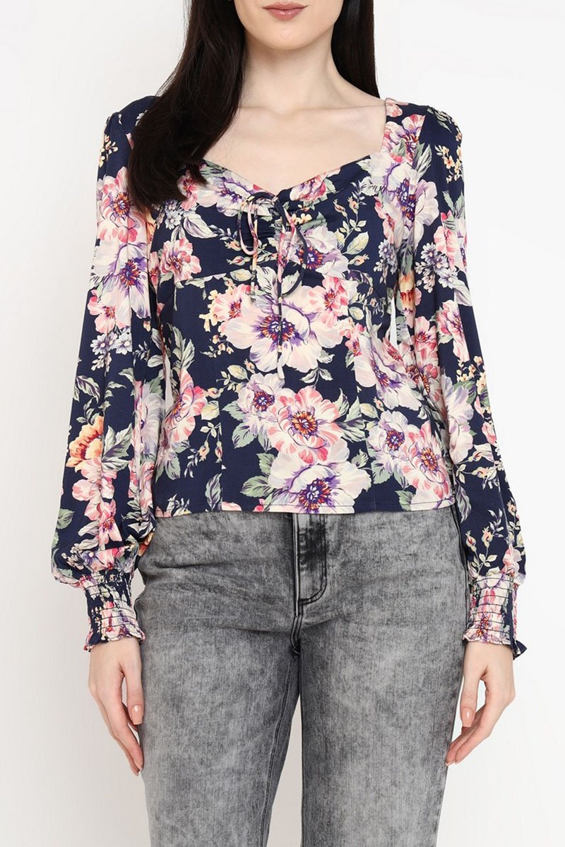 Top à manches longues bouffantes smockées.