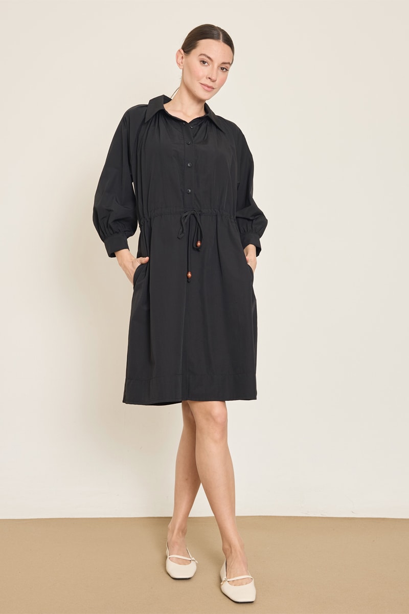 Robe chemise à manches 3/4 bouffantes boutonnées.