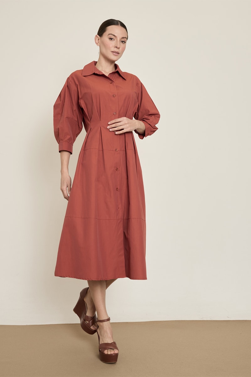 Robe chemise à manches 3/4 bouffantes boutonnées.
