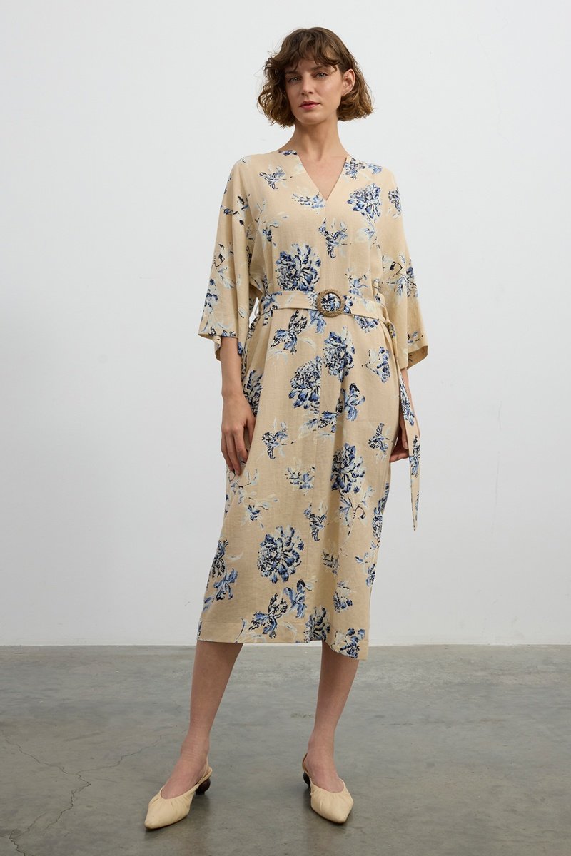 Robe midi en lin - Beige