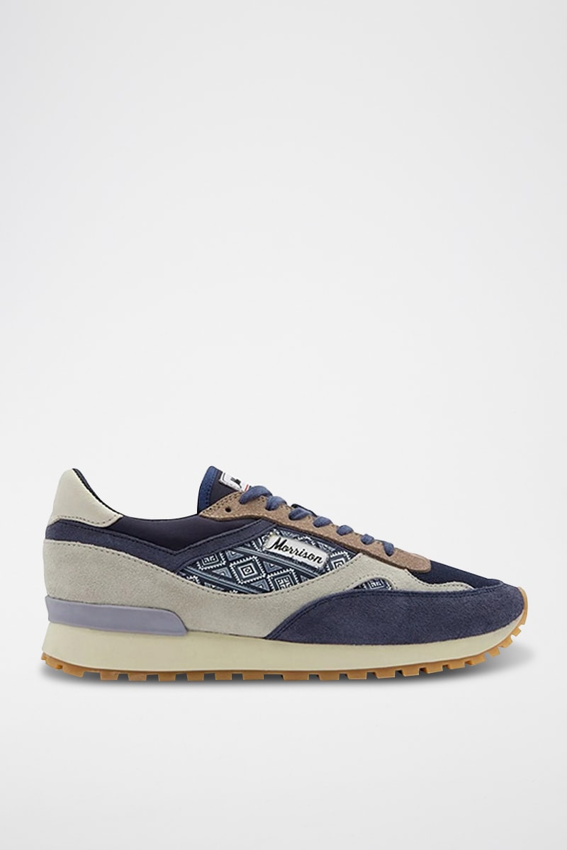 Baskets en cuir de chèvre nubuck Arthur - Bleu marine et beige