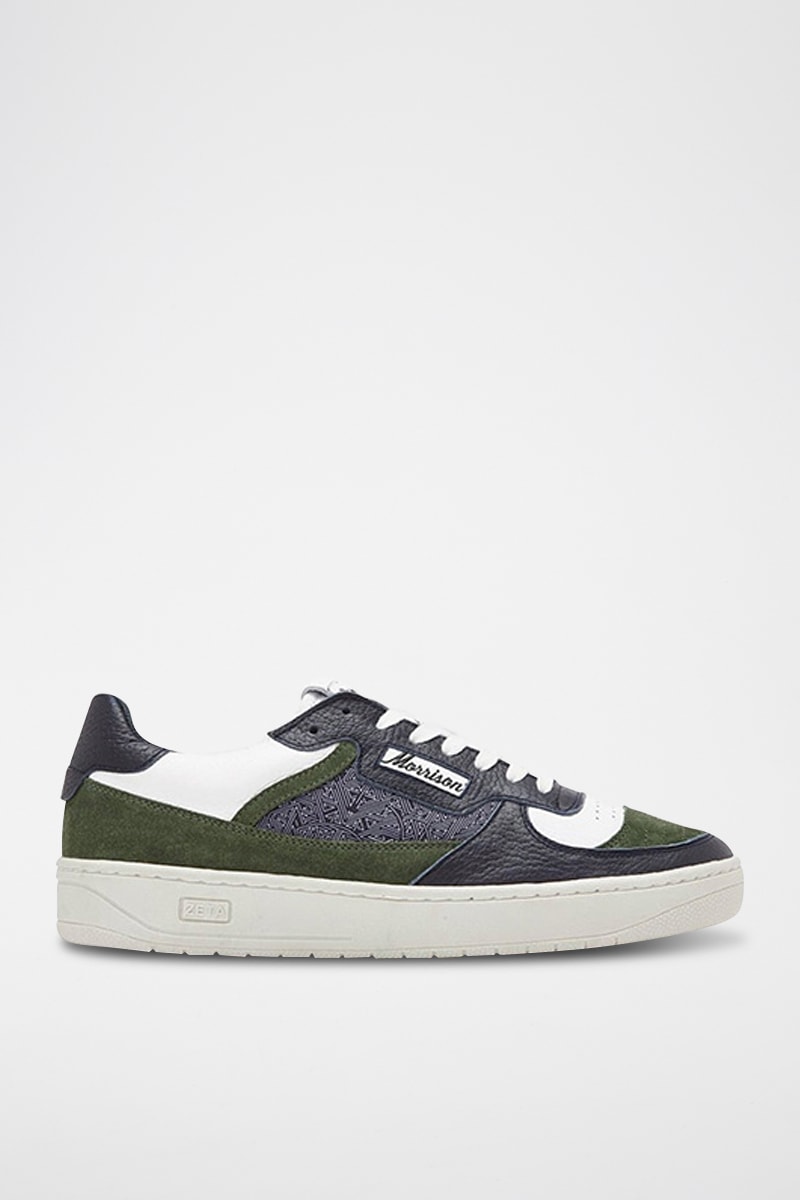 Baskets en cuir Austral - Vert olive et blanc