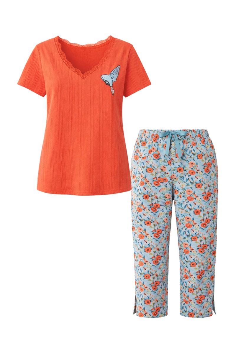 Pyjama - Horizons Fleuris - Rouge et bleu cobalt