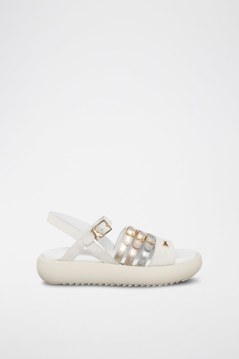 Sandales plateformes en cuir - Doré et argenté