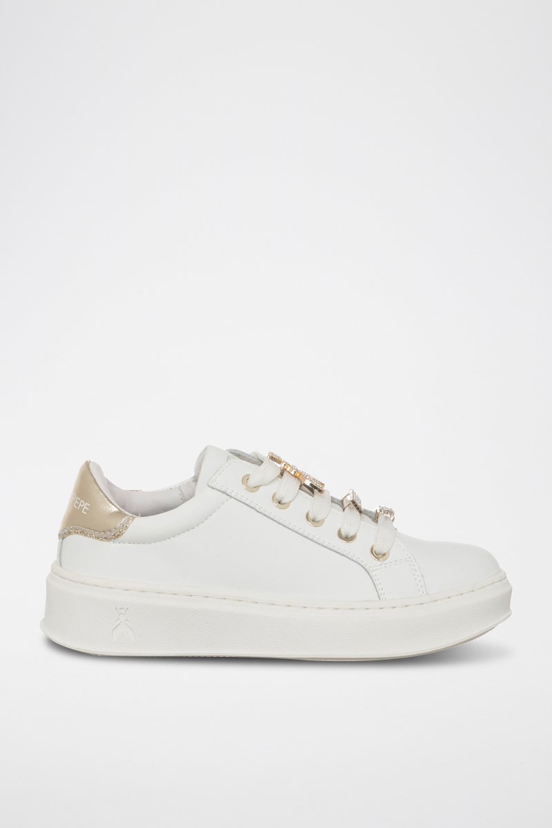 Baskets plateformes en cuir - Blanc et doré