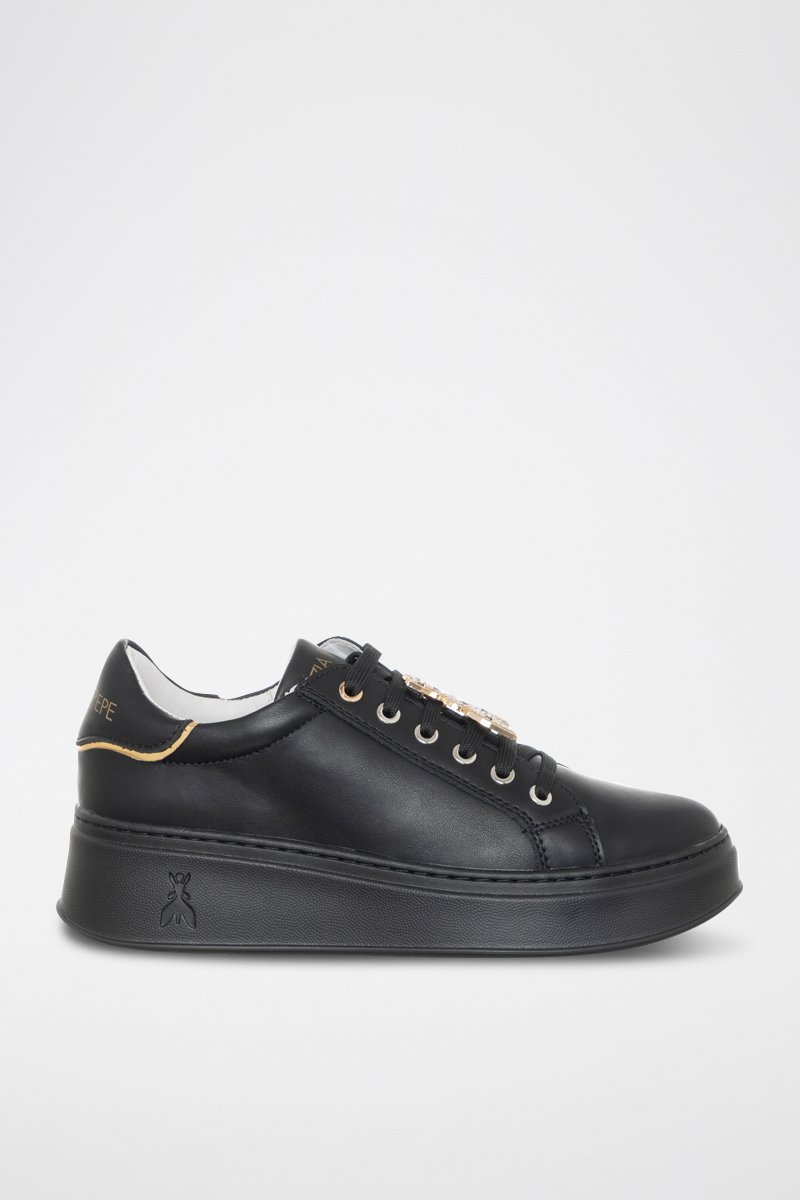 Baskets plateformes en cuir de veau - Noir et doré