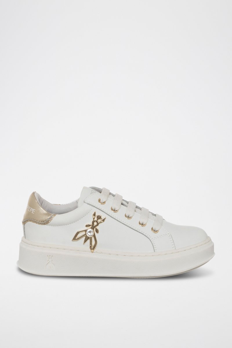 Baskets plateformes en cuir - Blanc et doré