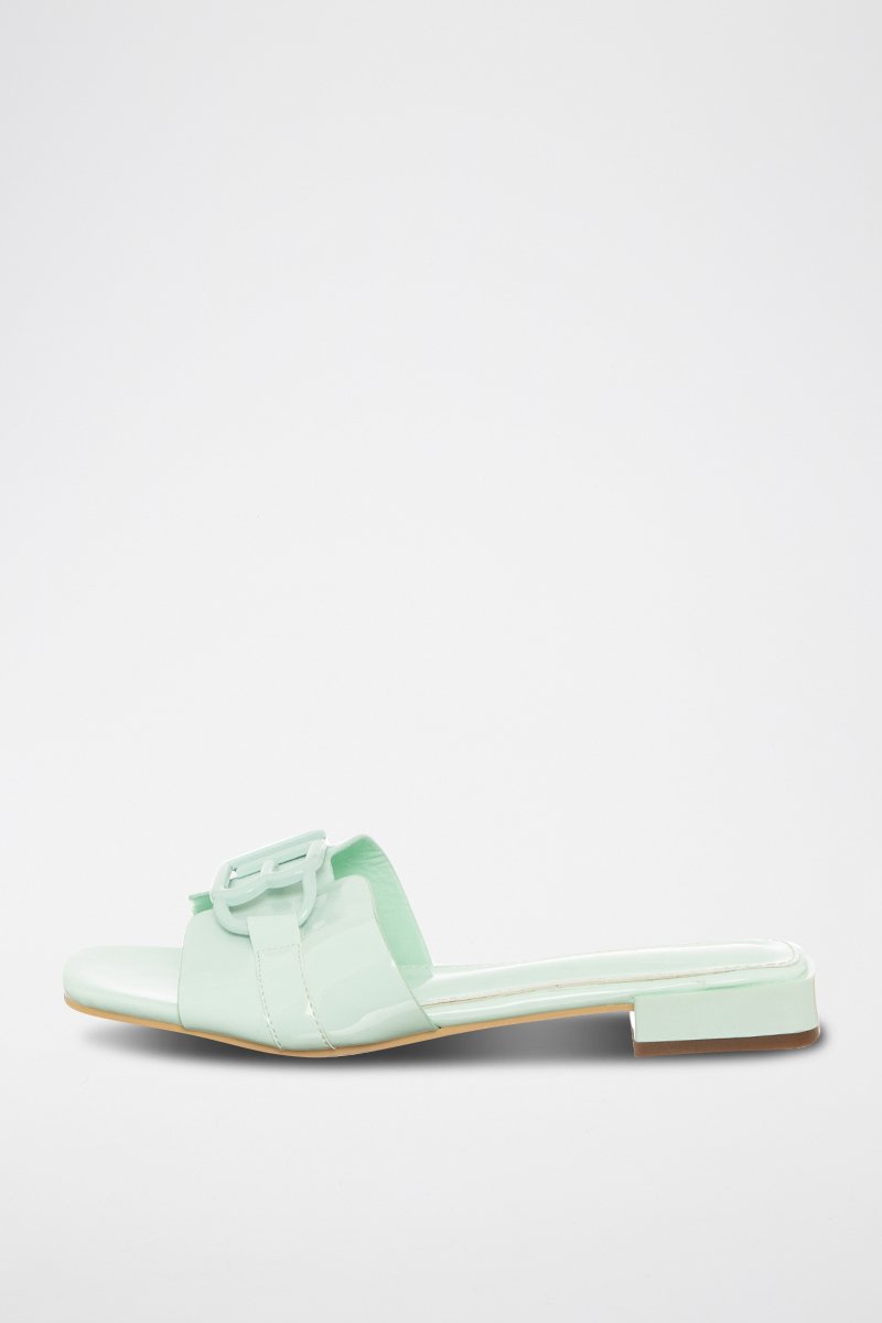 Mules en cuir verni.
