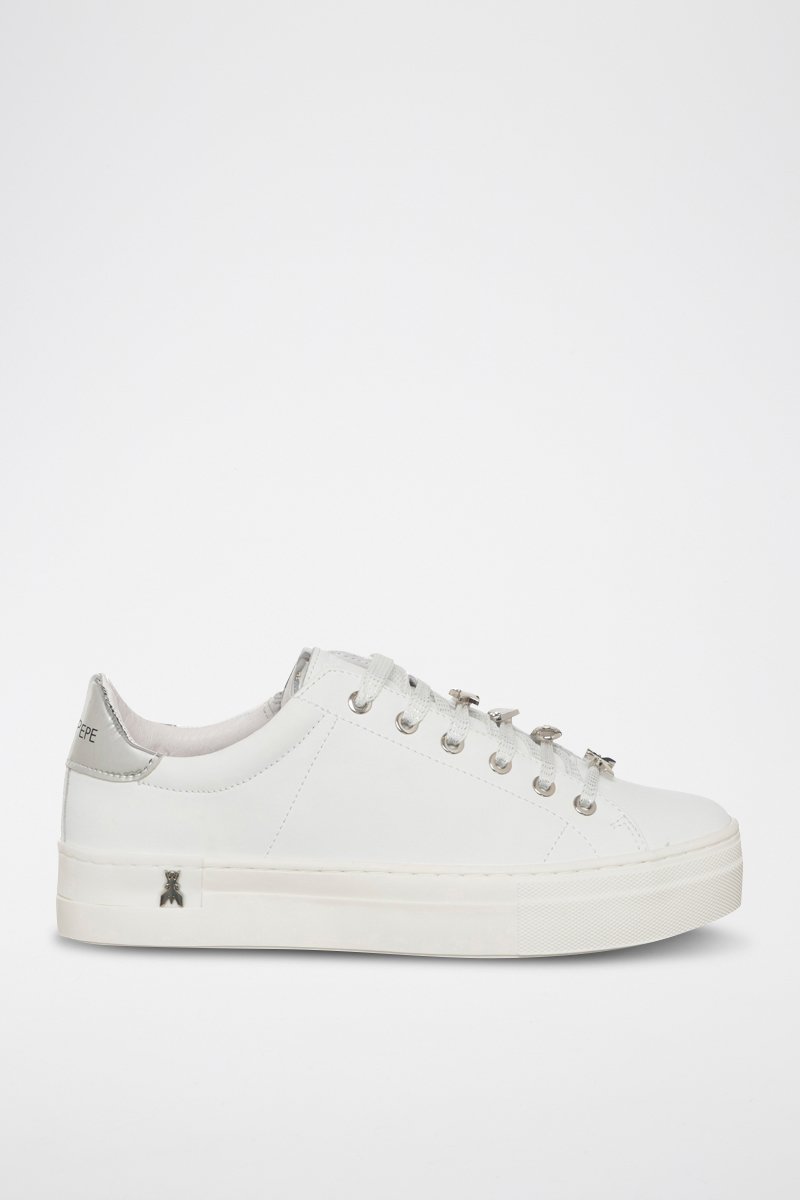 Baskets plateformes en cuir de veau - Blanc et argenté