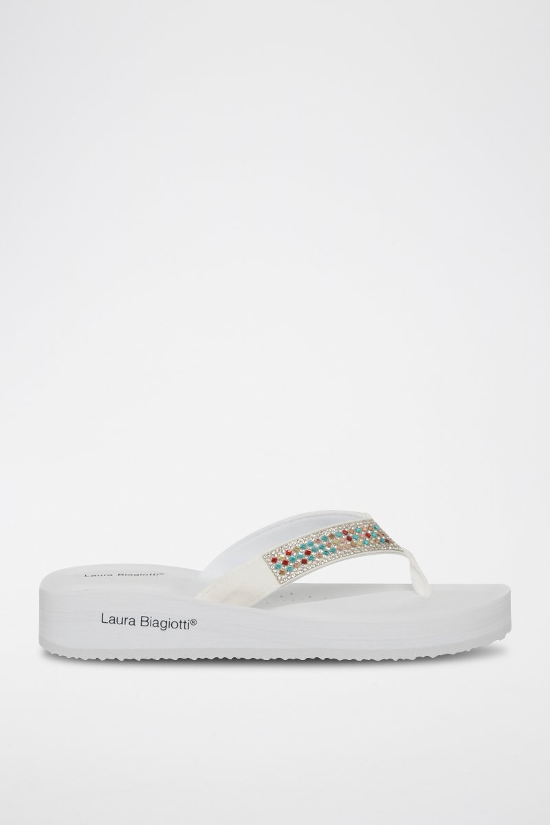 Tongs compensées à strass.