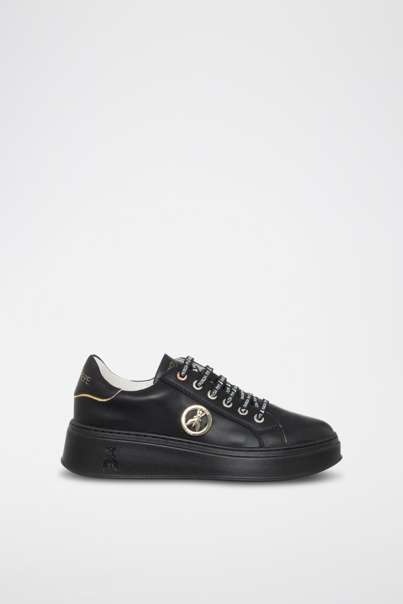 Fermeture à lacets devant, zippée et par scratch sur le côté.