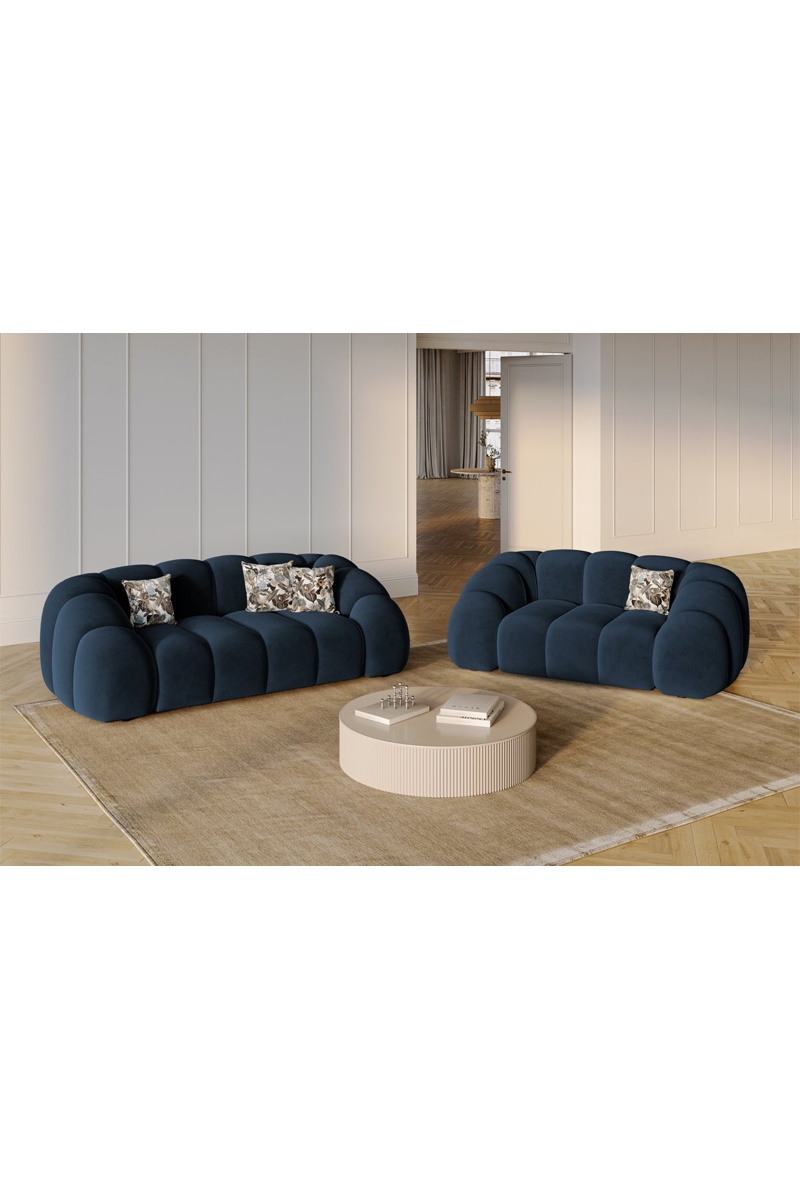 Canapé Lyna - Bleu roi - 3 places - En tissu velours