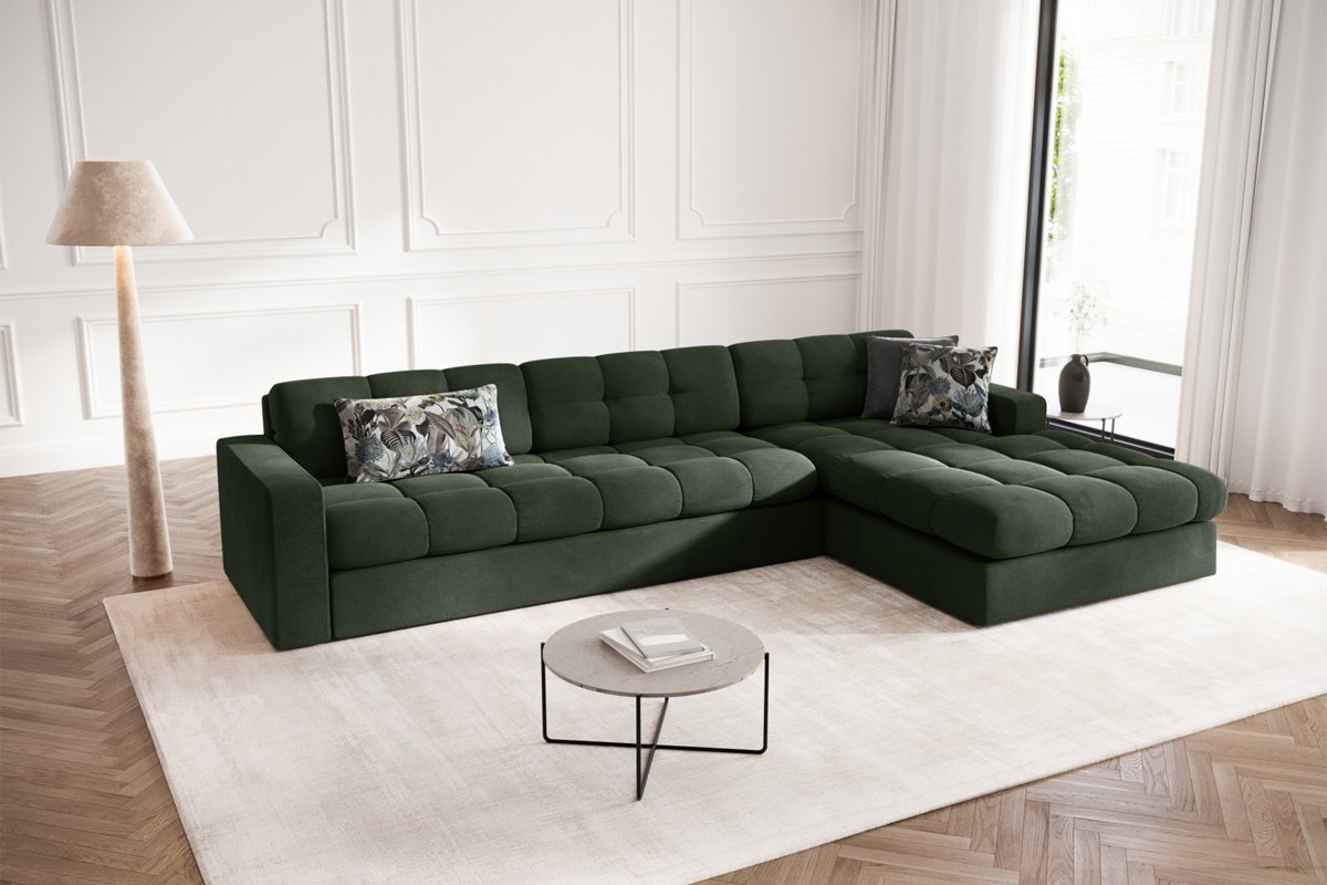 La localisation de l’angle, gauche ou droite, correspond à la vision d’une personne se tenant face au canapé.