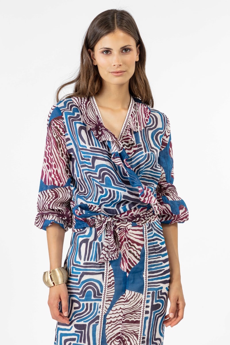 Chemisier noué en ramie à manches longues.