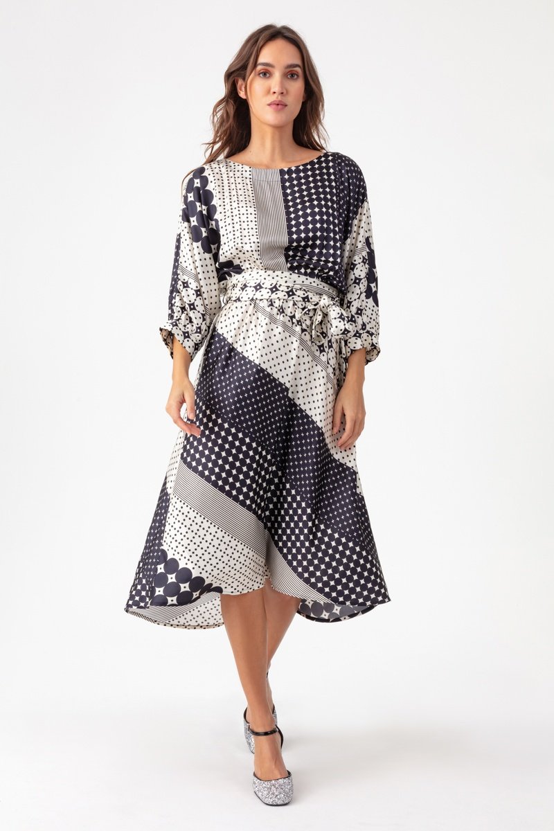 Robe midi - Blanc et noir