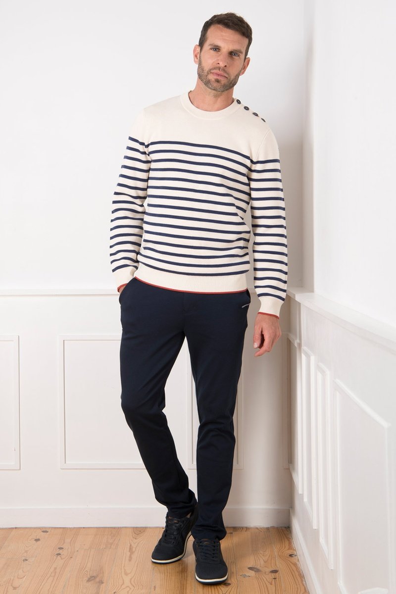 Motifs à rayures sur les manches, devant et au dos.