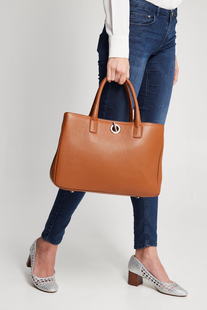 Cabas en cuir grainé pleine fleur.