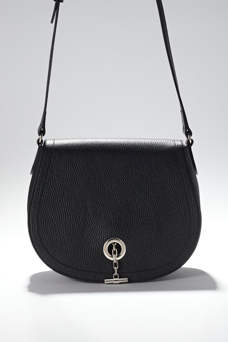 Sac bandoulière en cuir grainé pleine fleur.