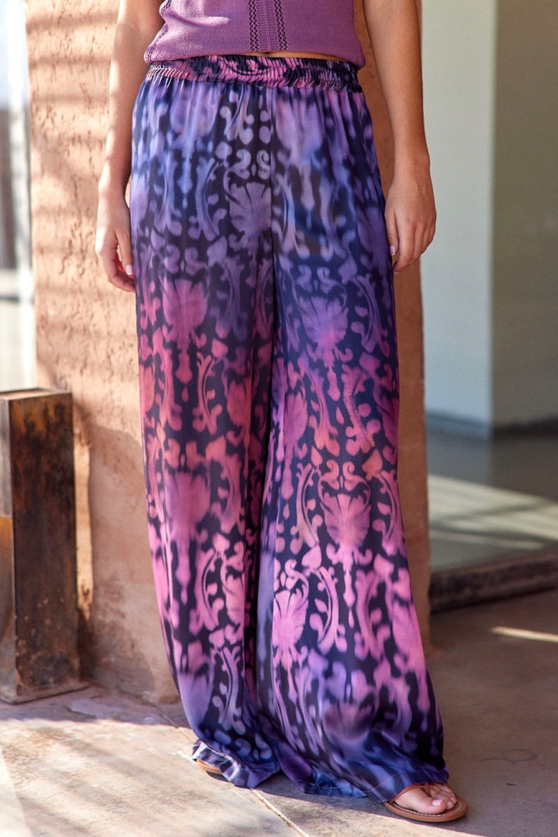 Pantalon en soie taille haute - Violet