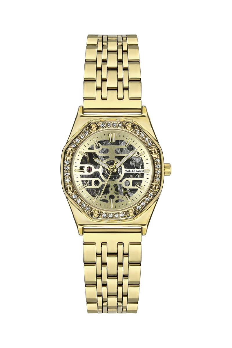 Montre squelette automatique en acier - Doré