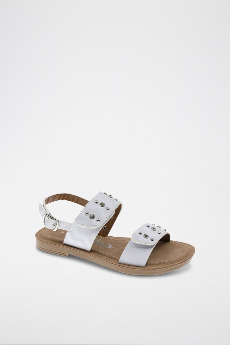 Fermeture par scratchs devant et par bride à boucle sur le côté.