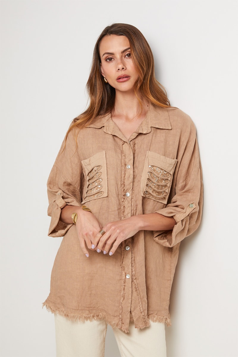 Chemisier en lin - Camel