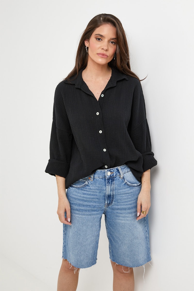 Chemisier en lin - Noir