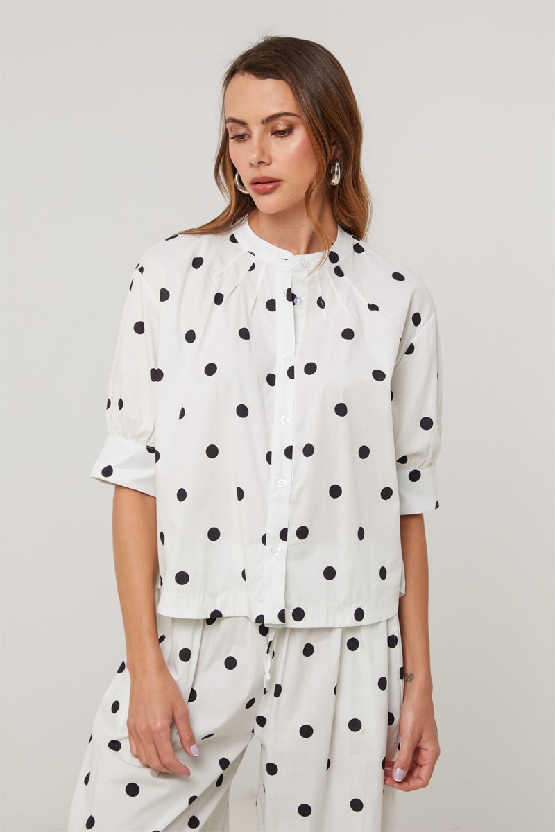 Chemisier à manches mi-longues boutonnées.