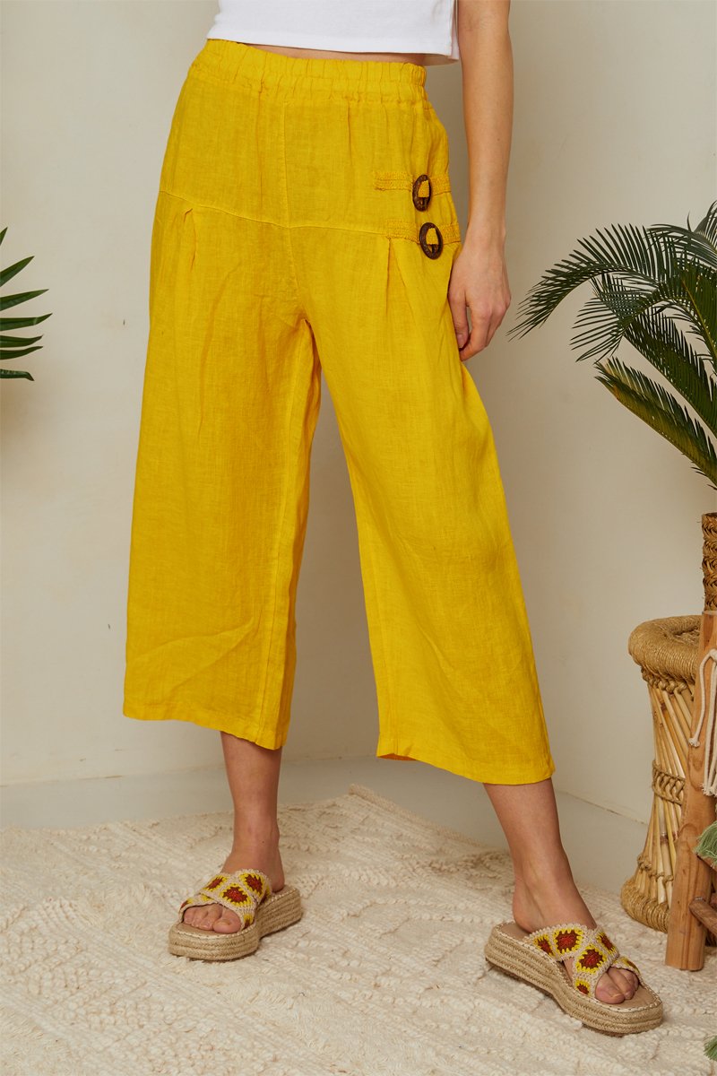 Pantacourt en lin - Jaune