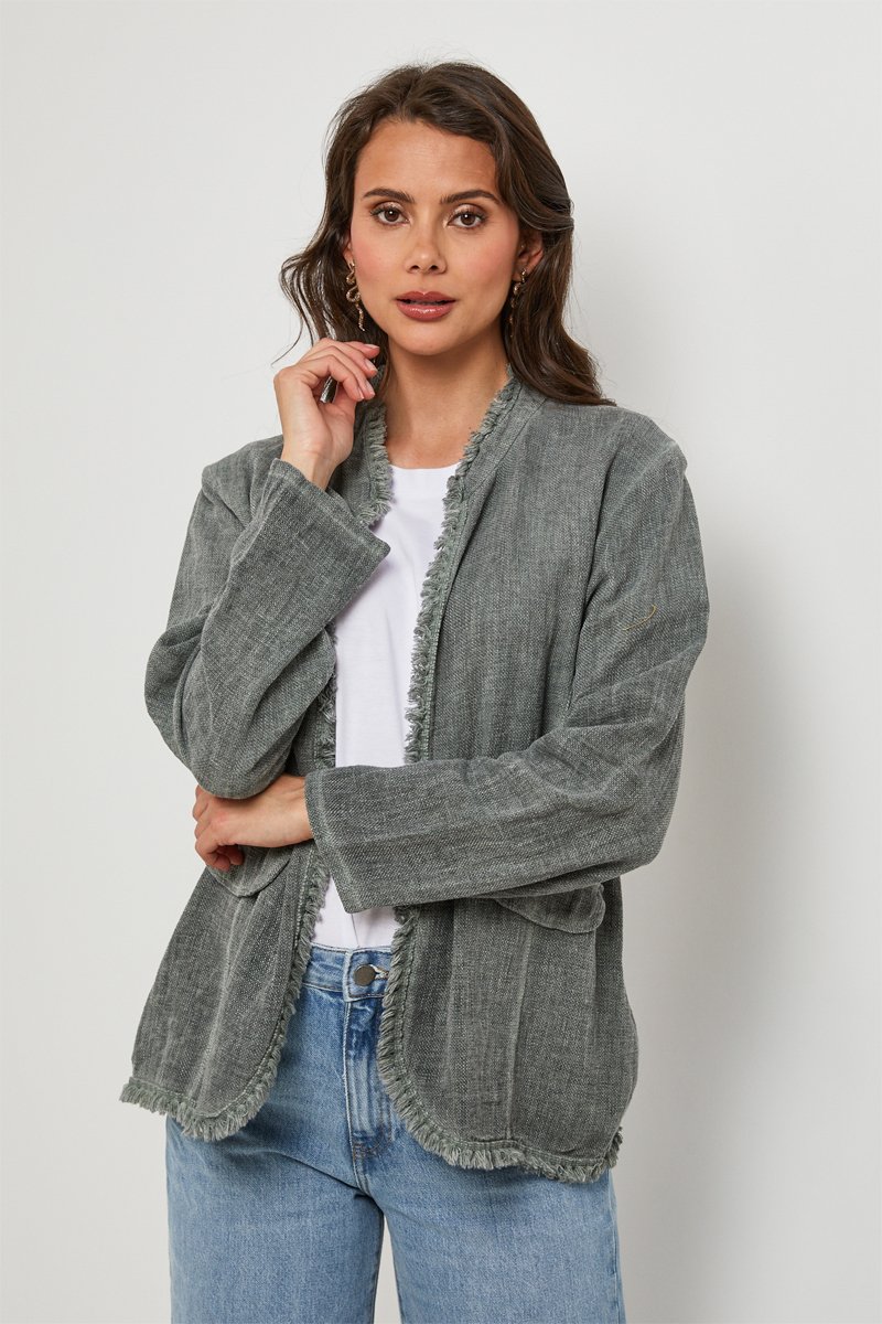 Veste en lin mélangé à manches longues.