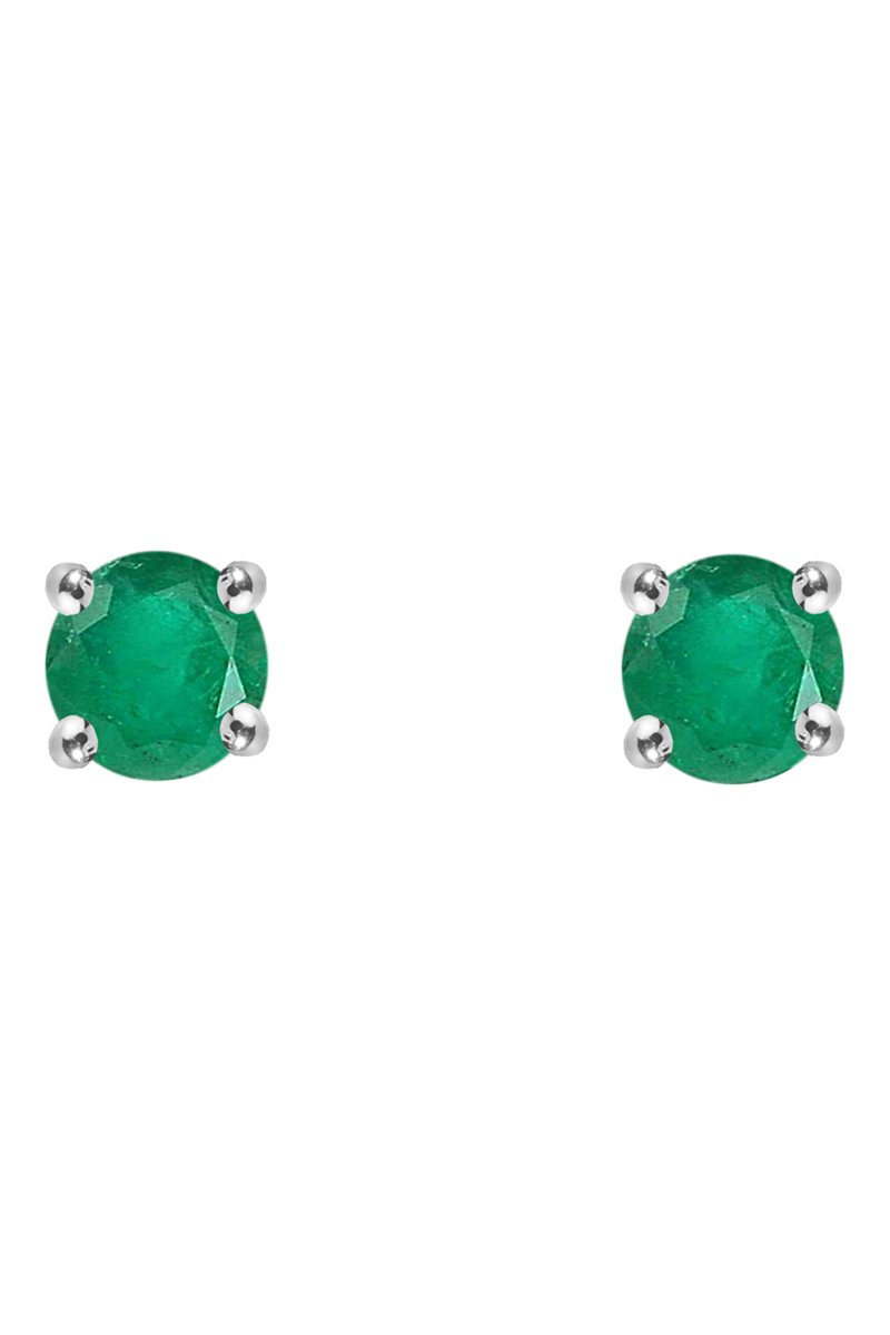 Puces en or blanc serties d'une émeraude.