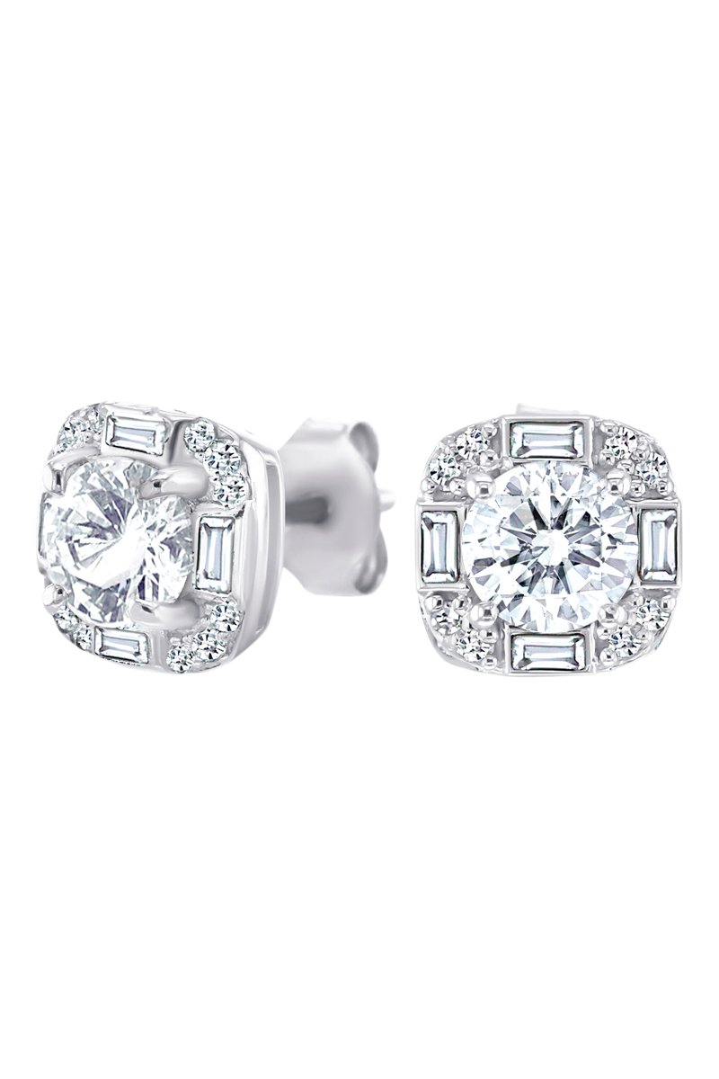 Puces en or blanc serties de diamants et topazes.