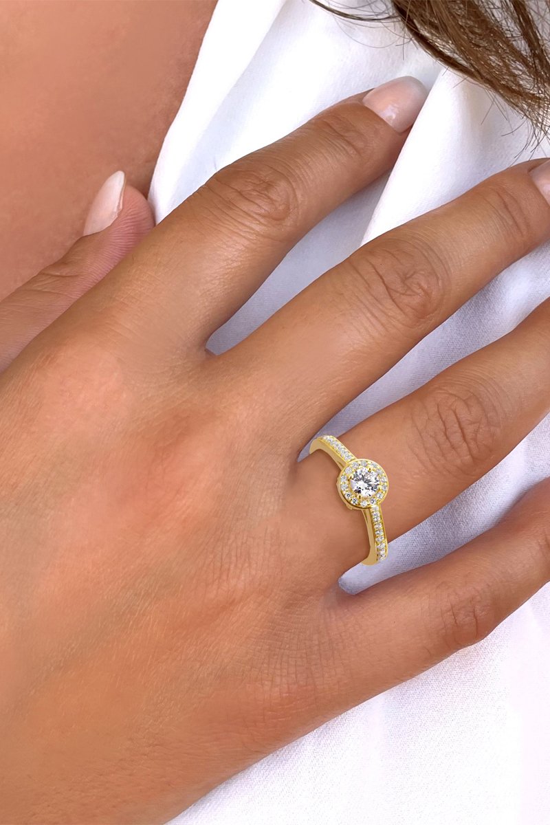 Bague en or jaune sertie de 34 diamants et d'une topaze.