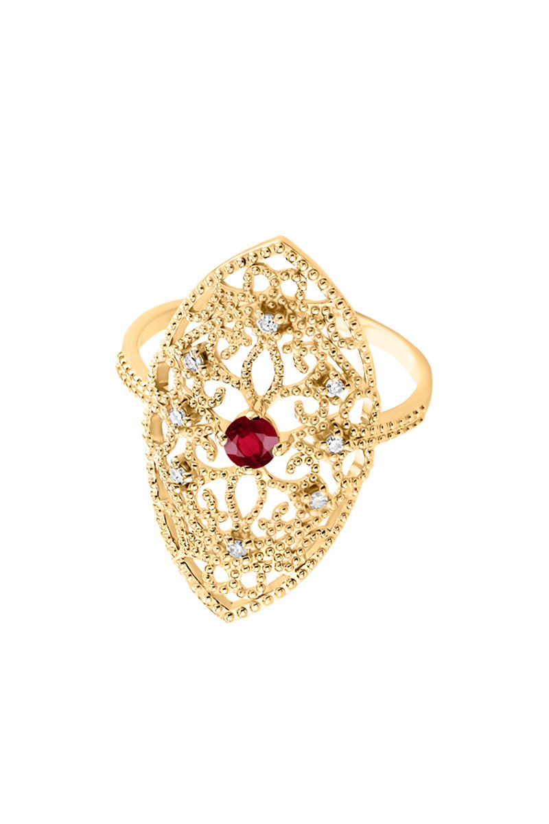 Bague - Or jaune, diamants et rubis