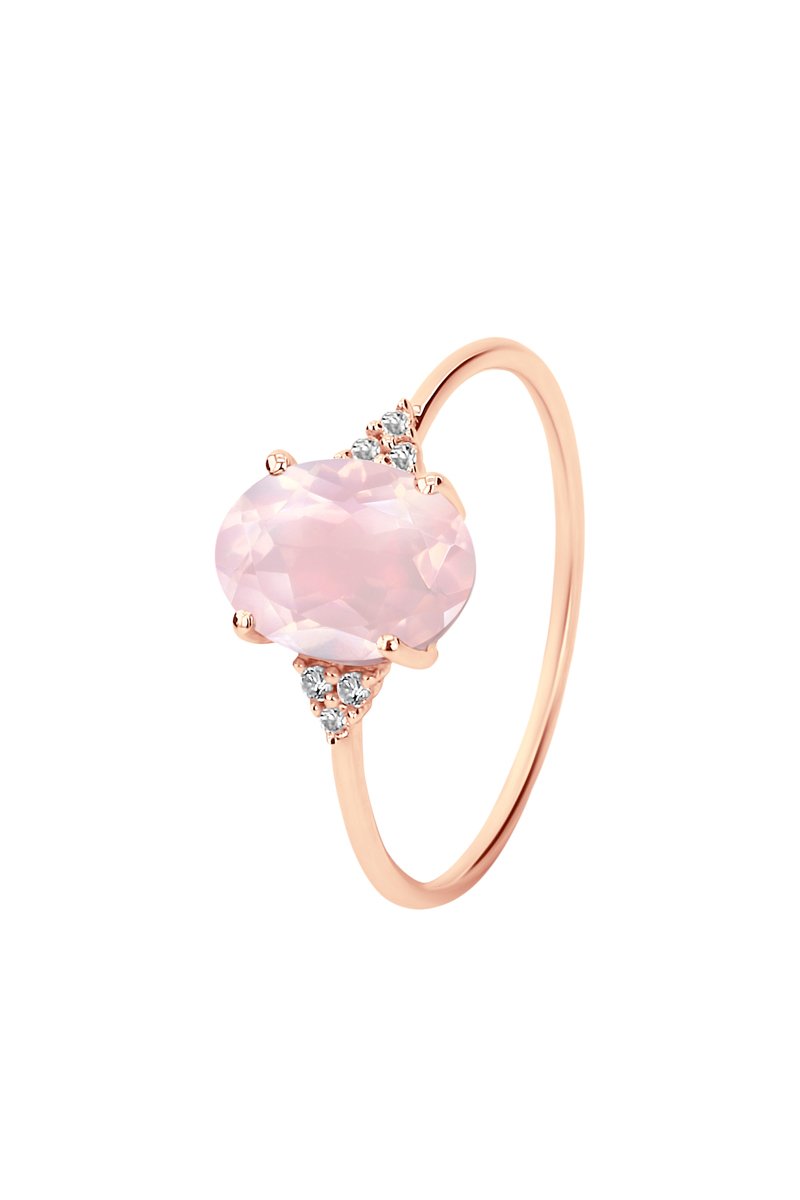 Bague - Or rose, diamants et quartz rose