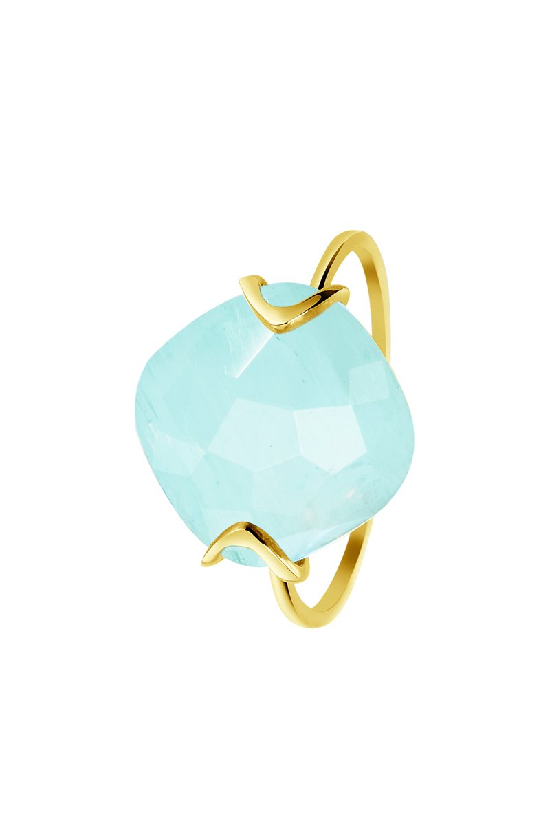 Bague - Or jaune et calcédoine aqua