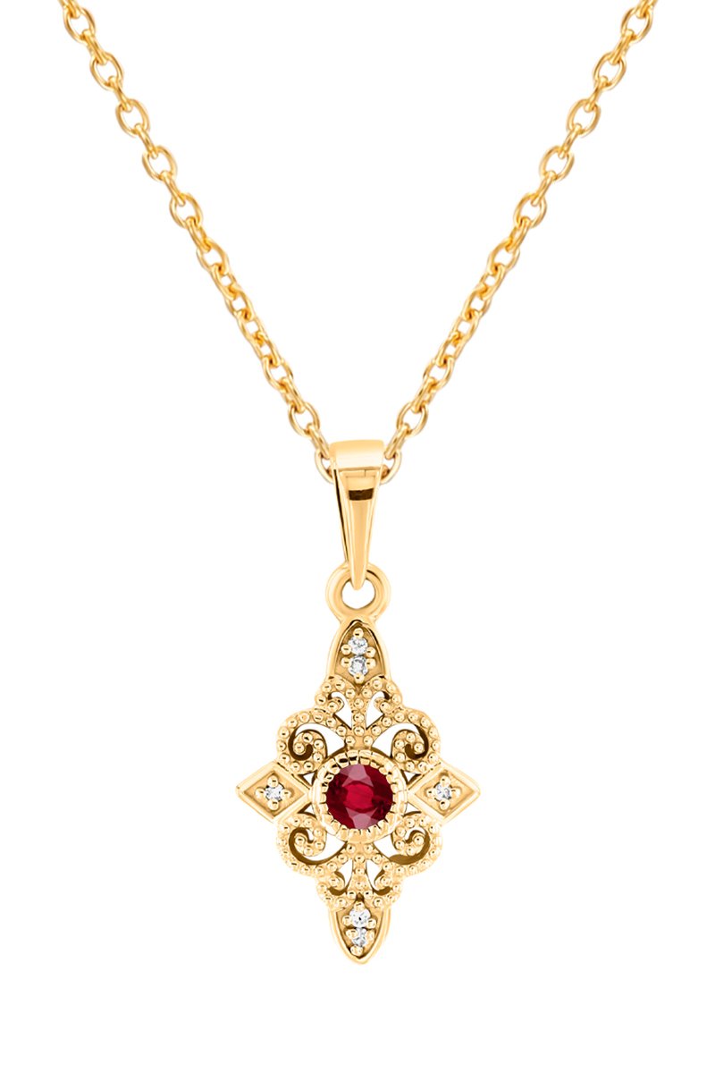 Pendentif en or blanc serti de diamants et d'un rubis.