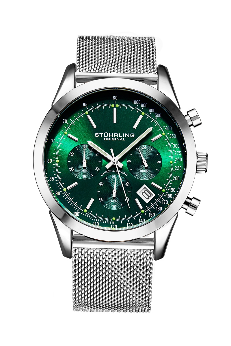 Montre à quartz en acier - Chronographe et tachymètre - Vert