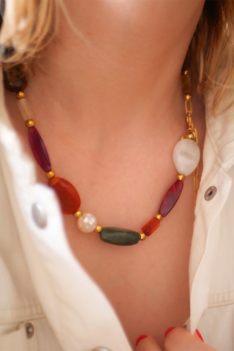 Collier Inès - Vert et bordeaux